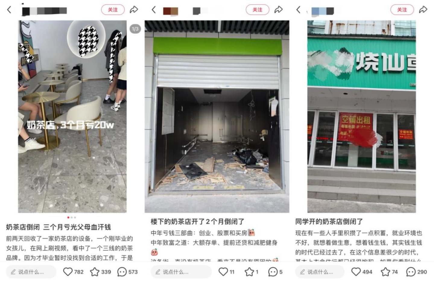 社交媒体上有关奶茶店关店的帖子 图源小红书