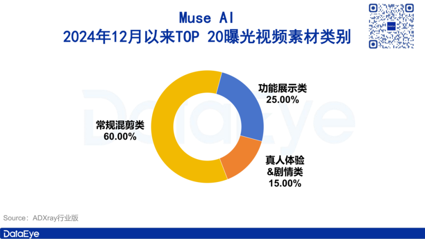 Muse AI素材类型则主要分为3类:功能展示类、真人体验&剧情类、常规混剪类。