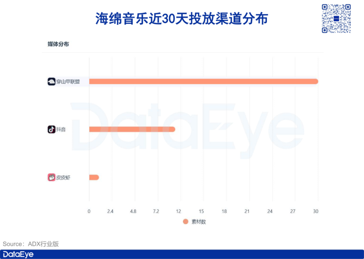 ADX行业版数据显示,近30天给麦APP与海绵音乐、Muse AI投放渠道分布有着明显差异。