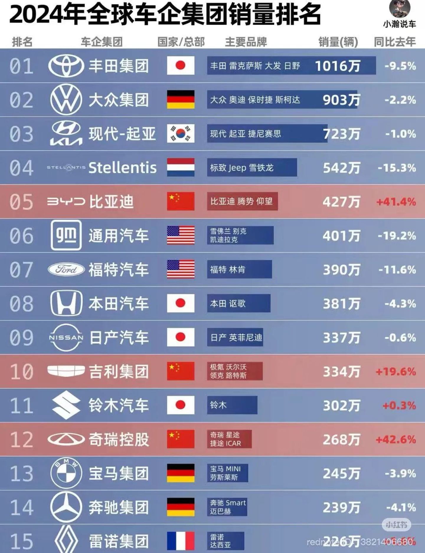 最后再说一点,或许大家忽略了,从2024销量榜看,深圳和杭州,都有一家车企迈入了世界前十强,分别是位列第5的比亚迪和位列第10的吉利,这是中国汽车产业历史性突破,也是此时此刻正在展现的国运。