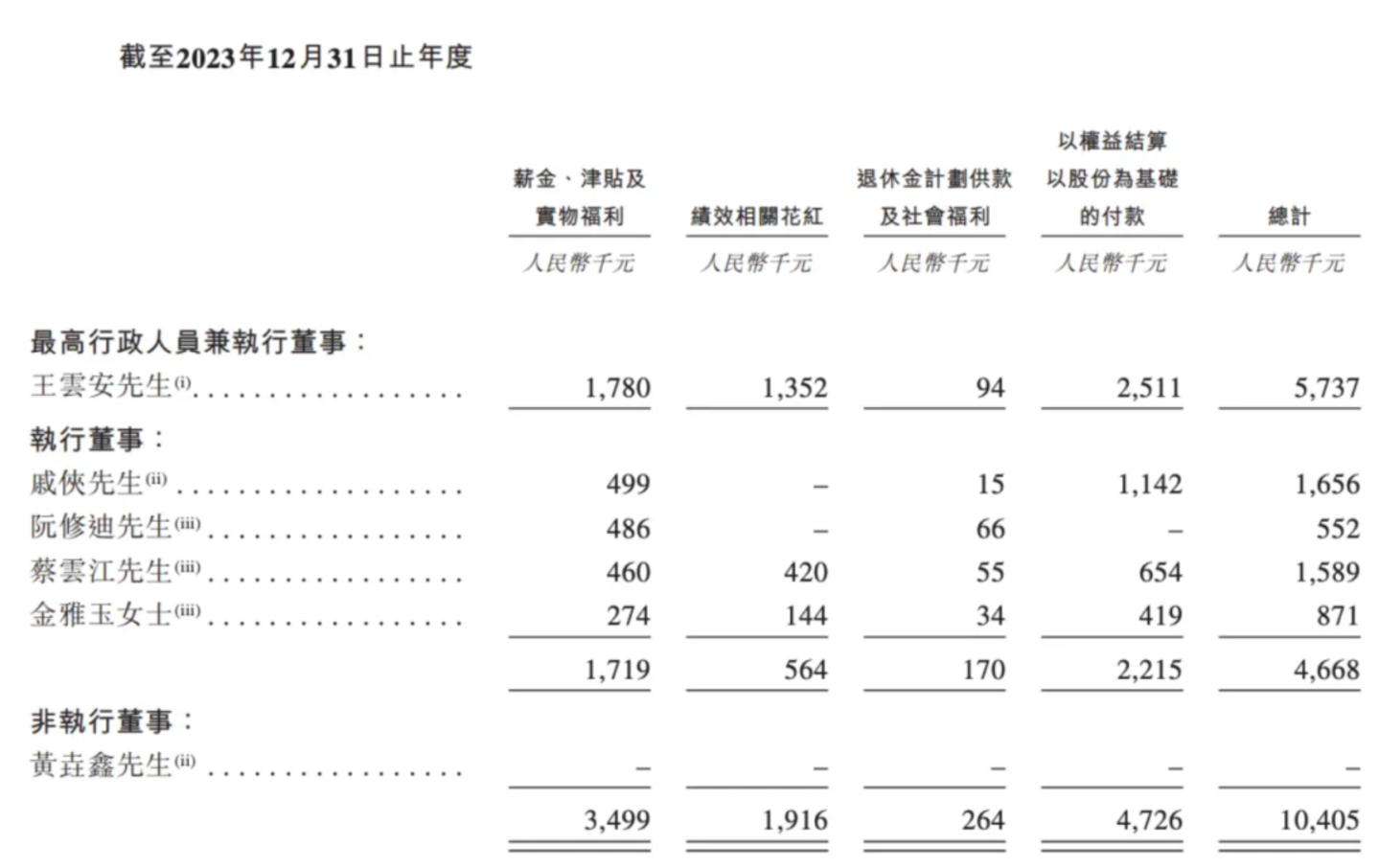 按照2024年12月31日计算,王云安、戚侠、阮修迪、潘萍萍、龙珠、红杉资本、Coatue34和AbbeayStreet的持股比例分别为43.21%、19.78%、2.76%、8%、4%、1%和0.2%,分别获得7.52亿元、3.44亿元、2.39亿元、0.48亿元、1.39亿元、0.696亿元、0.174亿元和348万元。