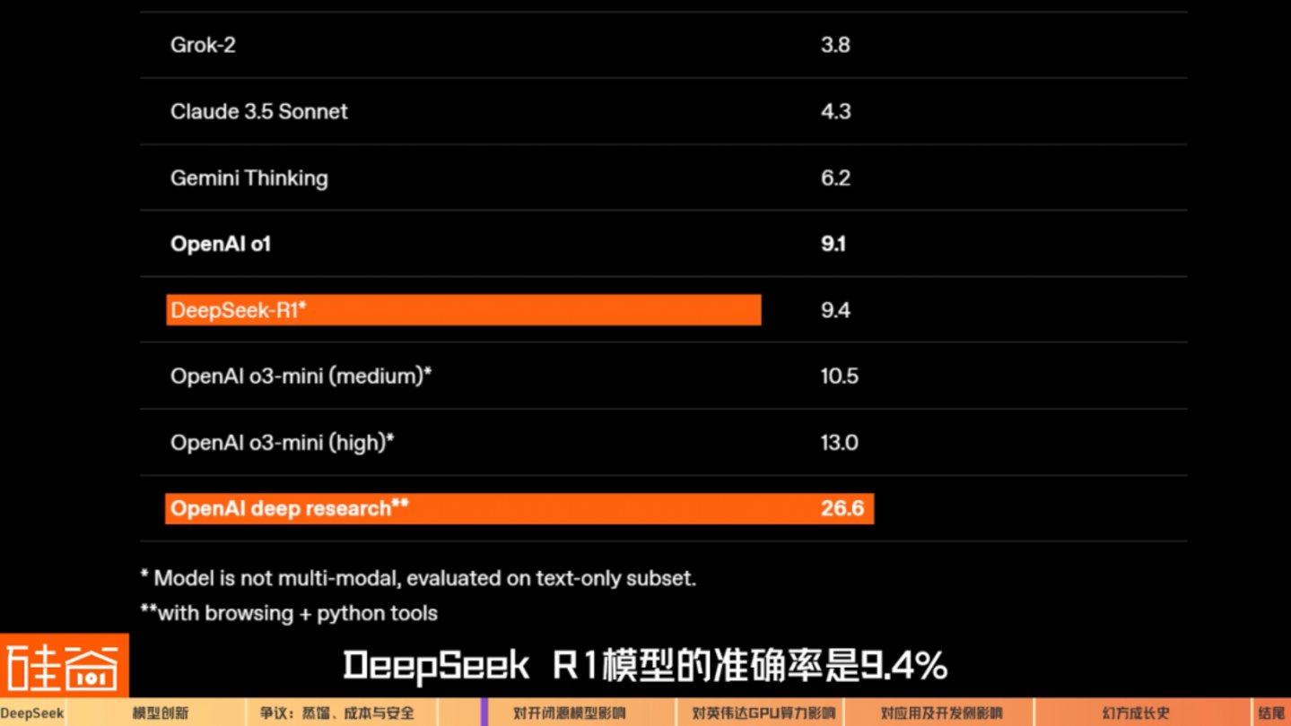 震惊全球AI届的点在于:DeepSeek使用想象不到的低成本,得到了不输OpenAI推理模型o1太多的性能。这代表着潜在对AI大模型发展范式的颠覆、对GPU算力市场的影响、以及对AI初创企业生态的改变。