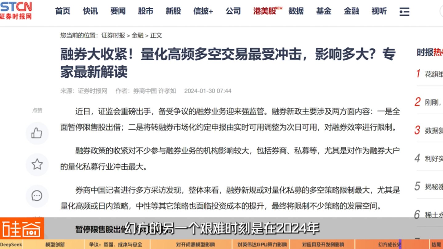 幻方的另一个艰难时刻是在2024年:中国金融监管机构对量化交易进行进一步缩紧,股市情绪也对量化基金们多有争议。