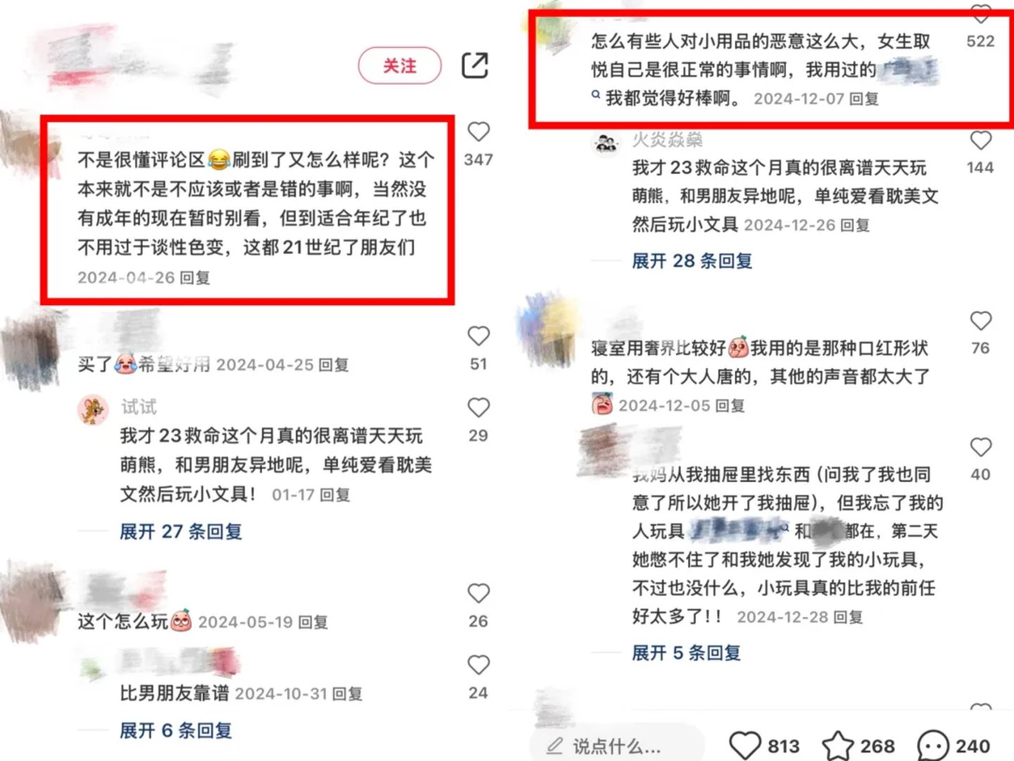 “大家都是成年人啦,取悦自己的身体也很正常吧。”在小红书平台分享成人情趣用品好物的评论区中,这样的观点总是被赞到最顶部。