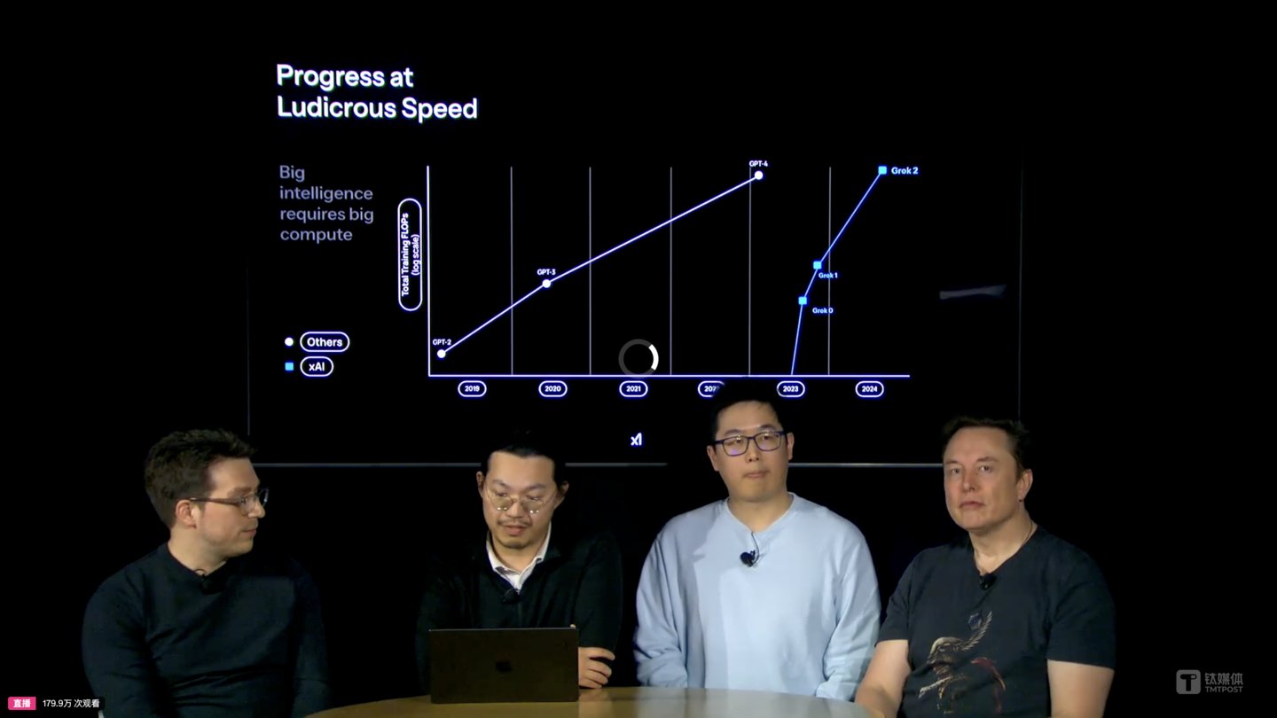 直播开始时,马斯克表示,xAI和Grok的使命是了解AGI(宇宙)的本质,外星人在哪里,生命的意义是什么?这将是好奇心所驱动,同时也导致 xAI 成为最大限度寻求真相的AGI公司的原因。