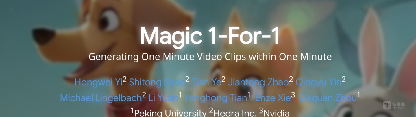 值得注意的是,就在今天上午,OpenAI和xAI的供应商、AI芯片巨头英伟达(NVIDIA),联合北京大学、Hedra公司发布新的开源视频生成模型 Magic 1-For-1,该模型生成视频速度很快,能够在 3 秒内生成 5 秒的视频片段,1分钟可生成1分钟视频,将文本到视频的生成任务分解为两个更易处理的扩散步骤蒸馏任务,即文本到图像生成,与图像到视频生成。