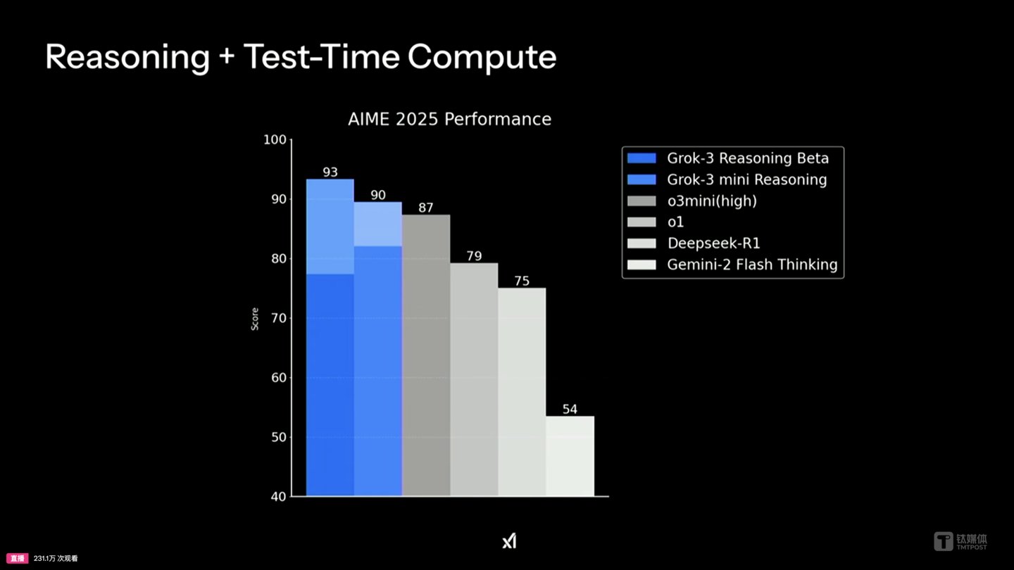 然而,目前有分析指出,在 “推理+测试时间计算” 这一测试中,使用 20 万张卡的 Grok 3 模型,其数学性能相较于 o3-mini-high 模型,或是 DeepSeek R1 模型,并没有显著优势。