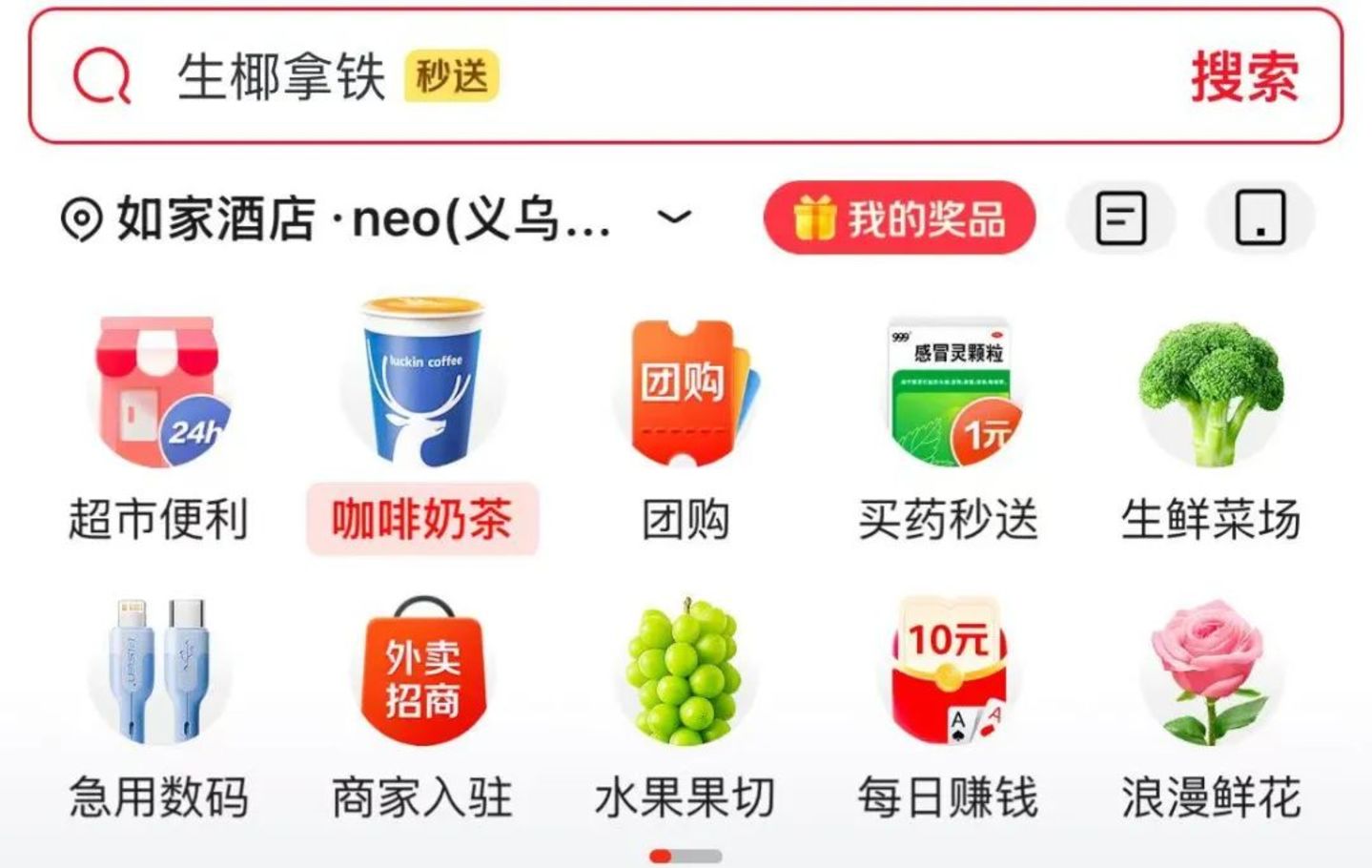 二三线地区的京东秒送页面,餐品归类于咖啡奶茶 图/京东