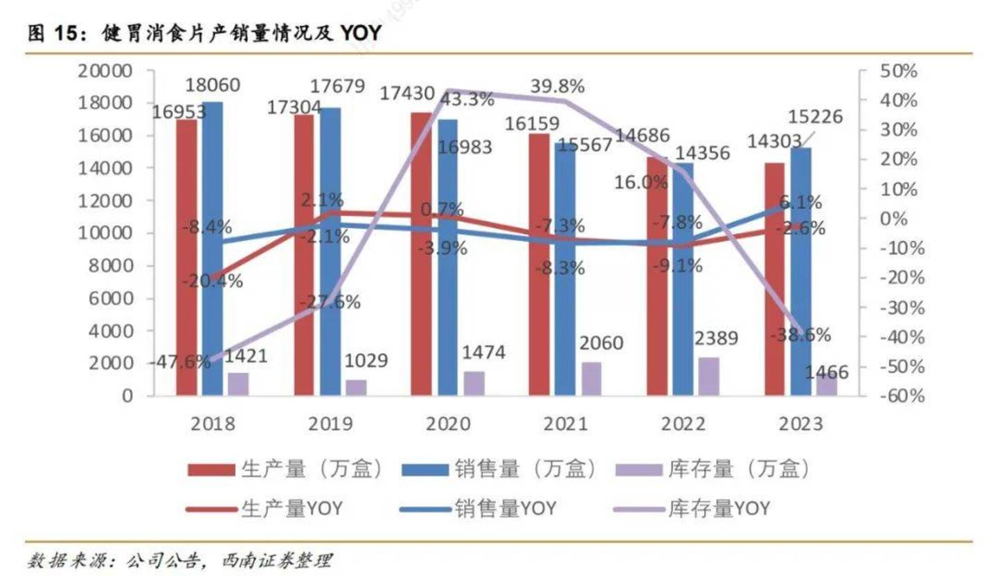 2023年年报中,江中药业表示,健胃消食片收入规模重回11亿元。