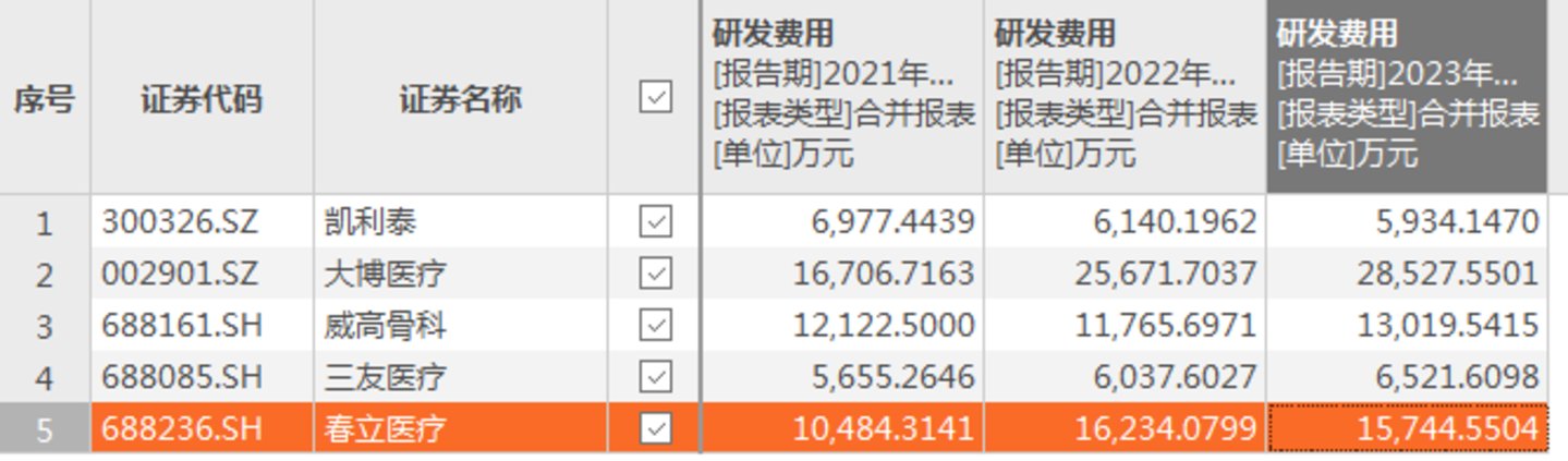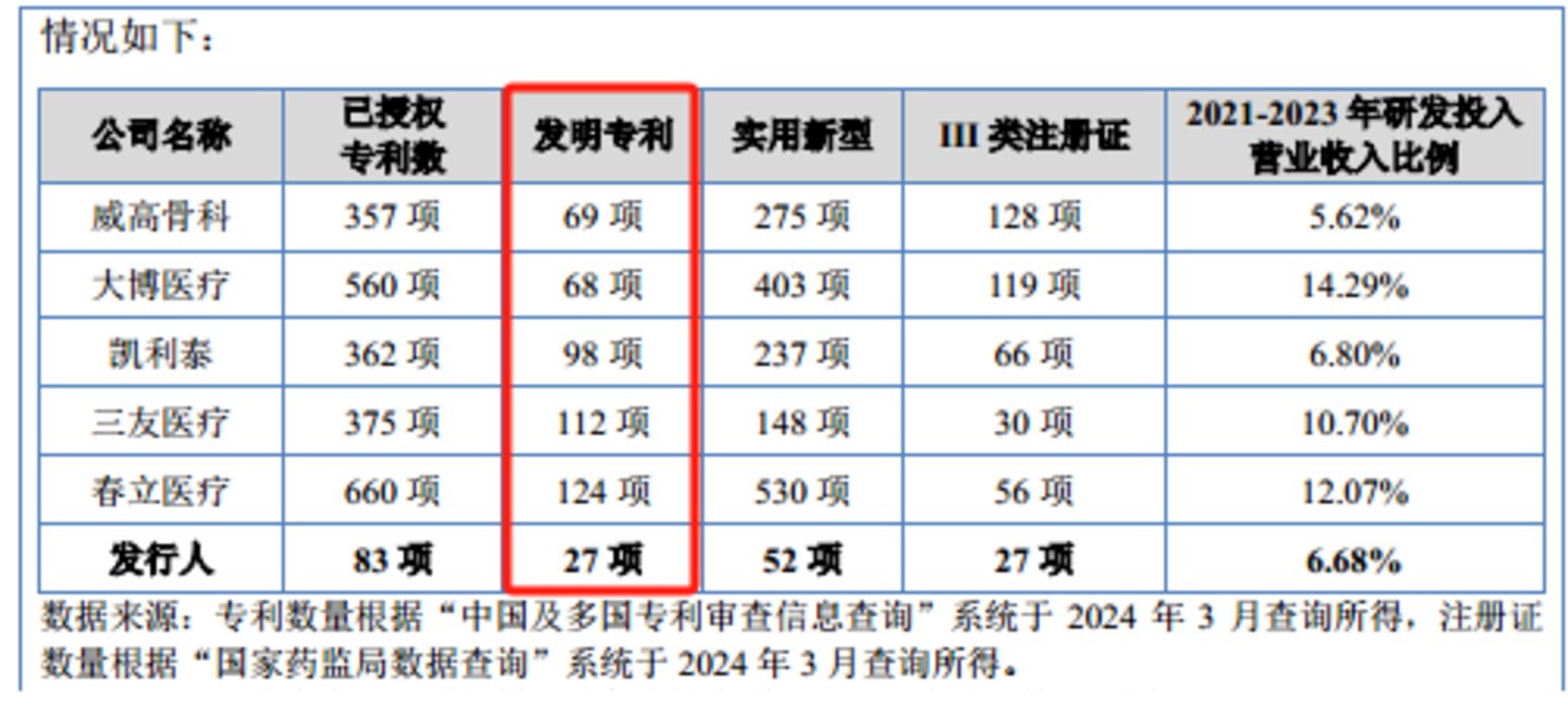 招股说明书显示,报告期内,爱得科技研发费用分别为2014.25万元、1688.93万元、1942.16万元,分别占当期营业收入的6.76%、5.91%、7.41%。同时,爱得科技在申报稿中披露,公司的同行可比公司分别为凯利泰、大博医疗、威高骨科、三友医疗、春立医疗,而报告期内,这些公司的研发费用具体如下: