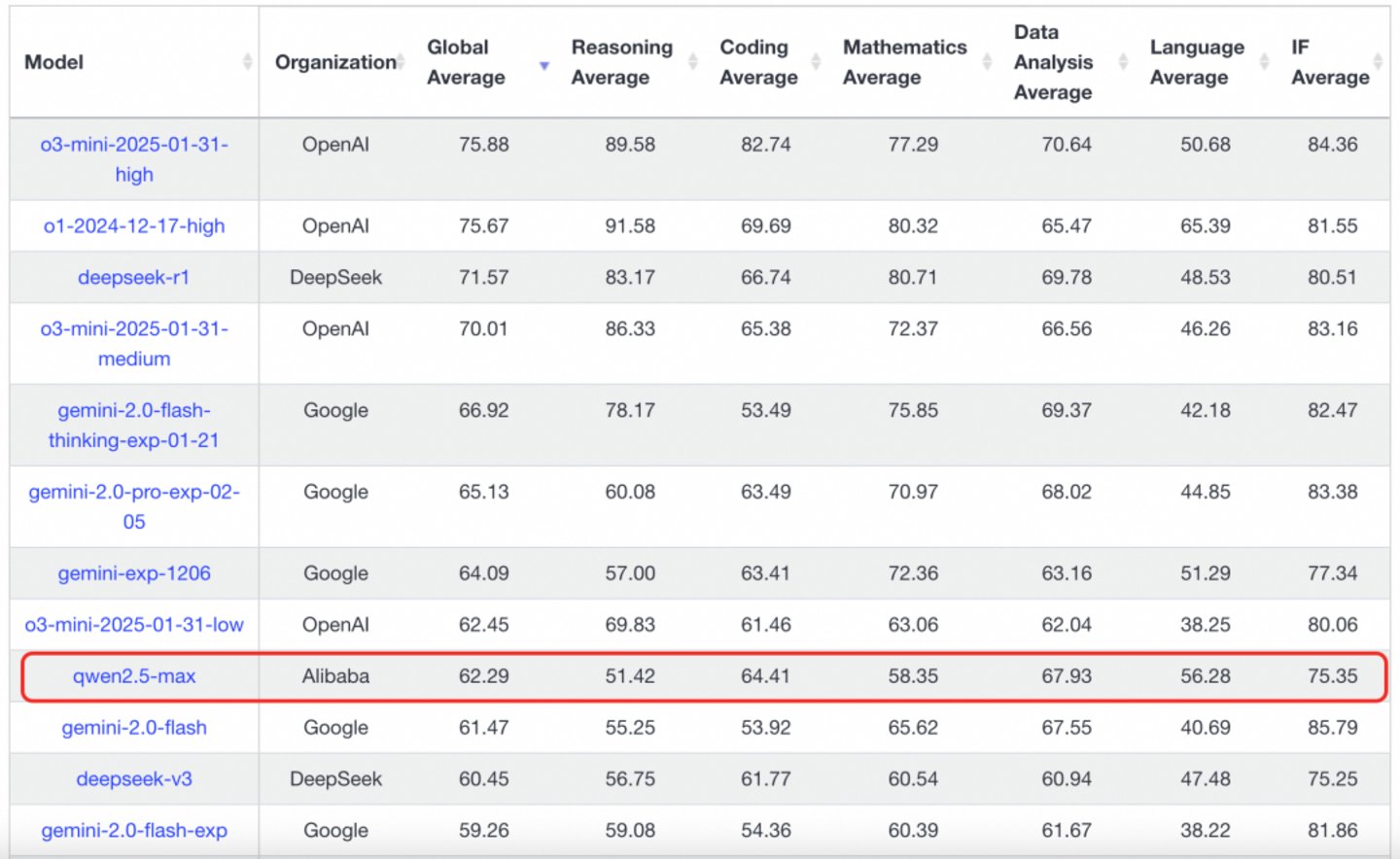 阿里能够拿到如此信任,也离不开其大模型较为优秀的表现。根据报道显示,1月30日,阿里巴巴发布Qwen 2.5-Max模型,Qwen2.5-Max模型代表阿里云团队对MoE模型的最新探索成果,预训练数据超过20万亿tokens,在多项基准测试中几乎全面超越了DeepSeek-V3、GPT-4o和Llama-3.1-405B。稍逊于DeepSeek-R1,在AI模型评测平台Chatbot Arena的排名中为全球第7,已属全球靠前水平。特别是在数学和编程能力的单项测试中更是排名全球前列。