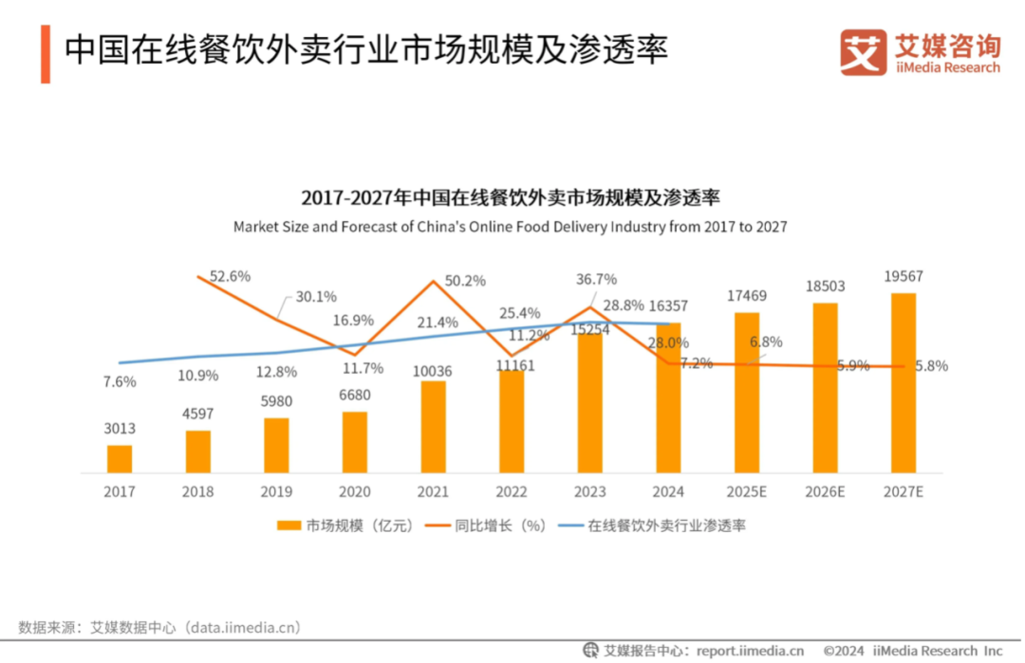 另外,新外卖平台难以获取新的餐饮商家与成熟外卖平台进行竞争,从成熟外卖平台抢夺原有的餐饮商家,是一个存量迁移的过程。据艾媒咨询数据显示,近三年(2022-2024年)中国在线餐饮外卖行业渗透率增速放缓,仅从25.4%提升至28%,且一二线城市外卖市场已逐渐饱和。