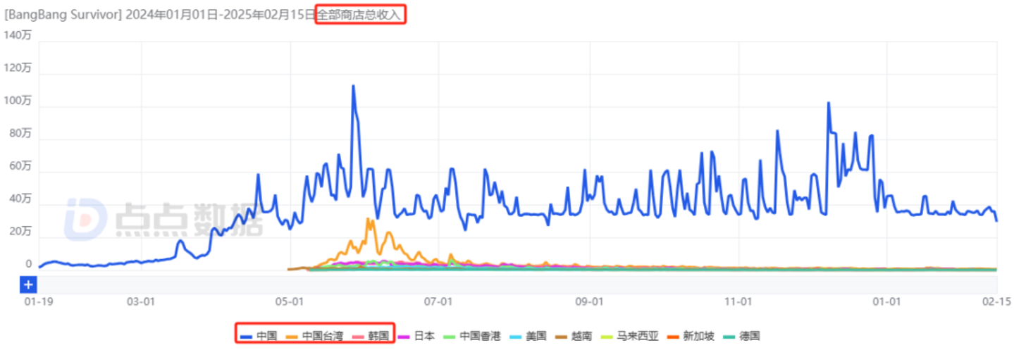 此外,所有新品都是先上APP端,再在一个月内小游戏端的上线,并且都在较短的时间内完成了出海落地,其海外拓展的大致顺序繁中、东南亚、日韩、欧美,除了《向僵尸开炮》在日韩市场较为亮眼外,其他3款产品的主要阵地还是集中在繁中地区;