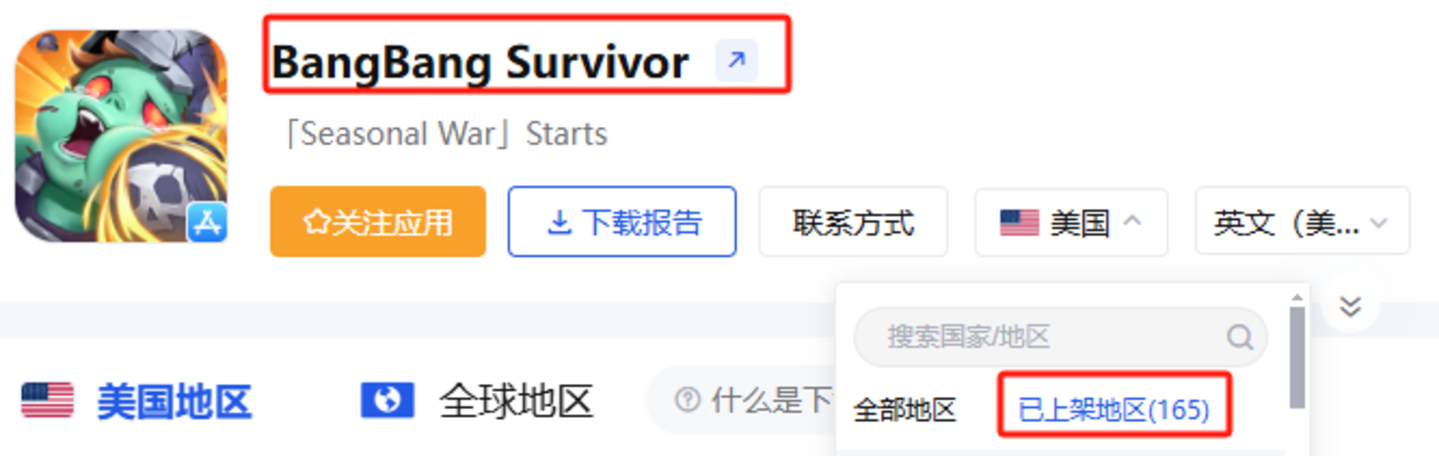 紧接着不到两周的5月8日,由露珠游戏负责的国际服《BangBang Survivor》先是上线61个国家及地区,之后陆续登陆更多区域市场,目前已经上线165个区域市场。