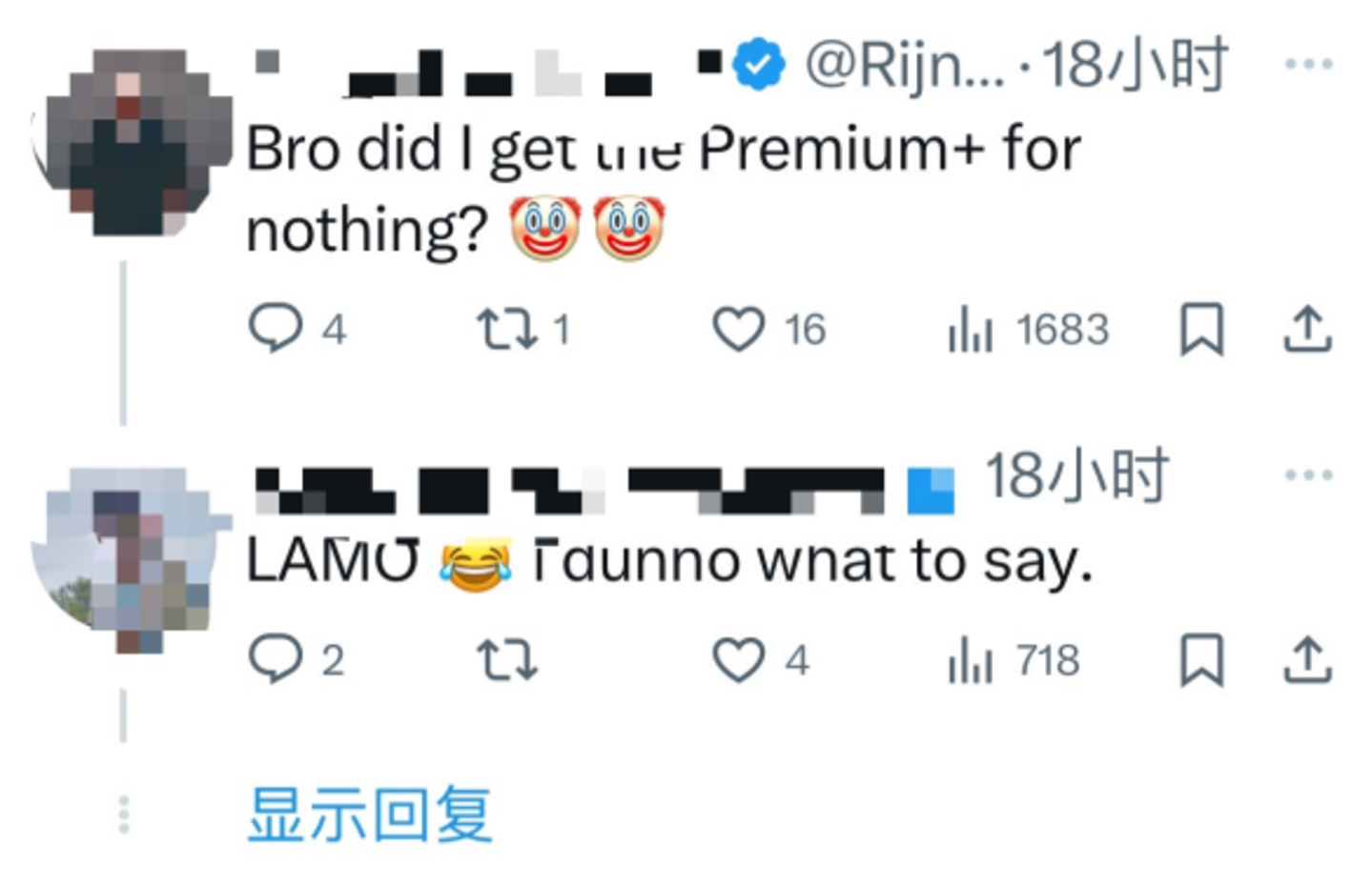 果不其然,刚刚付费(花40美元)升级到X Premium+的用户emo了。