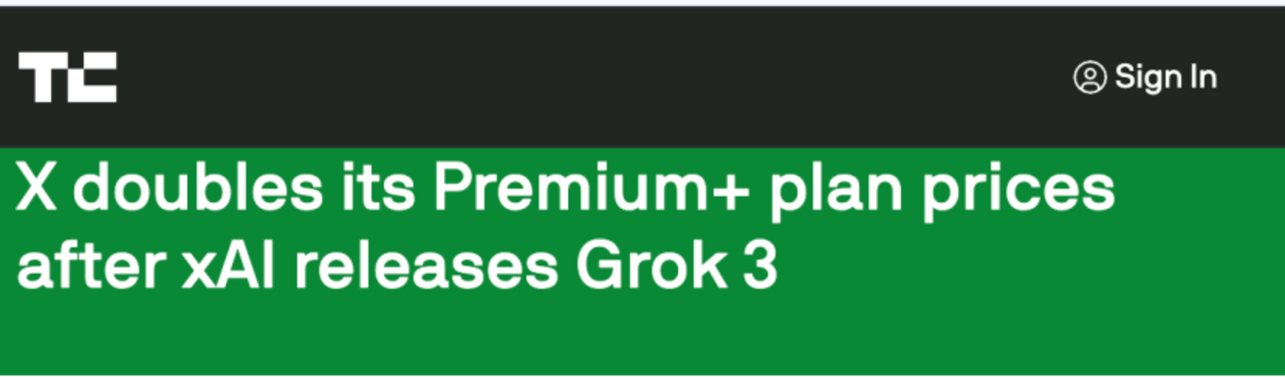 然而,到了昨天上午,也就是Grok 3发布不到24小时的时候,人们惊讶地发现:马斯克偷偷给X平台的Premium+涨了个价?