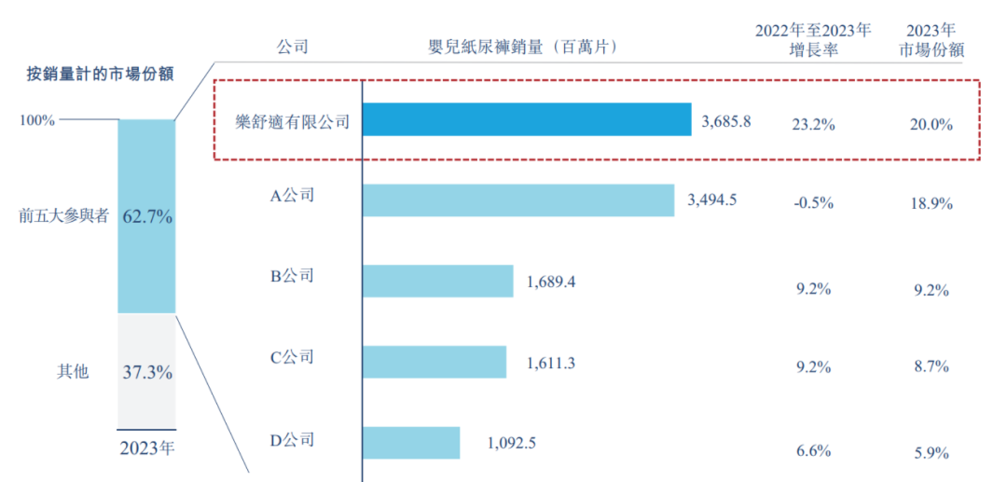 根据弗若斯特沙利文报告,乐舒适主攻的市场仍在扩容。2019年至2023年,非洲地区的婴儿纸尿裤、婴儿拉拉裤及卫生巾的市场规模复合年增速高达6.7%,明显高于同期中国、北美及欧洲分别为2.2%、1.4%及0.9%的复合年增速。预计在2023年至2028年,非洲该市场规模亦将以8%的速度增长。