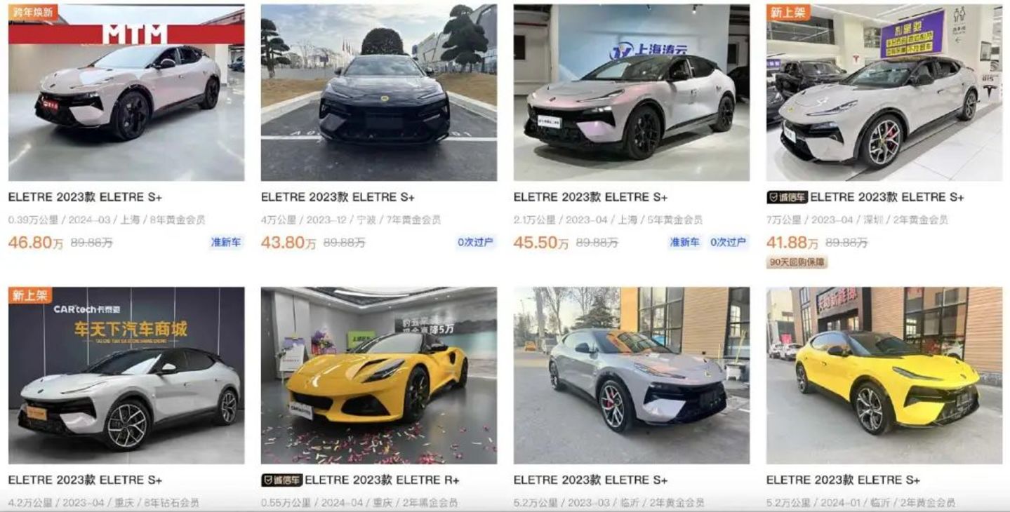 2月20日,电厂在汽车之家二手平台搜索到的数据显示,2024年3月上牌的Eletre S+售价为46.80万元(不含过户费),损失原车价的48%,情况相似的车基本都是在这个数字上下微微浮动。