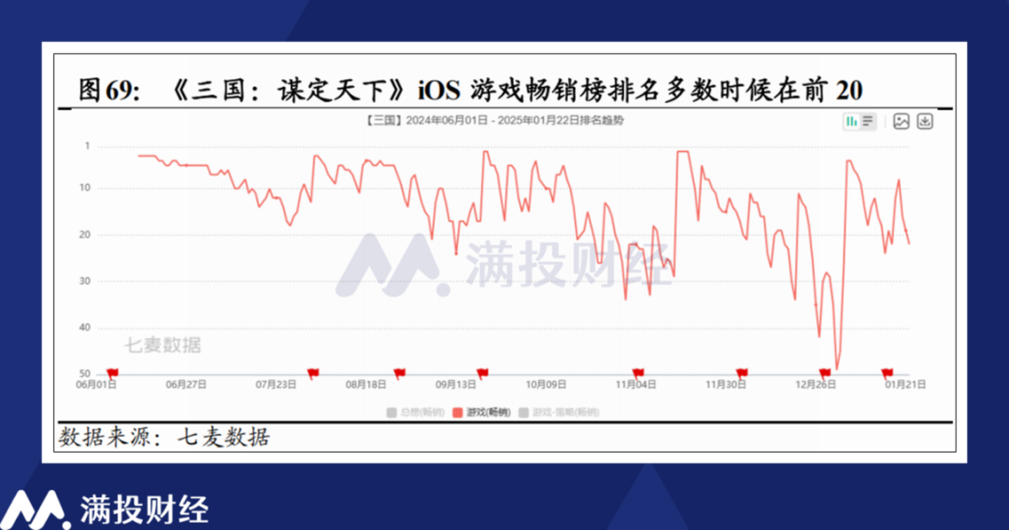 在四季度的电话会议中,B站董事长陈睿提及其对《三谋》的期望:“希望它能够保持五年优质且稳定的运营周期”。考虑到SLG游戏类型本就偏长线,而《三谋》在上线后的数据留存也较为亮眼,只要其运营保持稳定,避免突发风险,实现长期运营目标的可能性较大。
