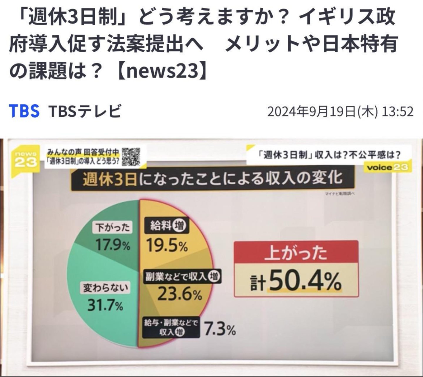 《日本经济新闻》的一份民调透露:年收入越高的受访者越支持“上四休三”。