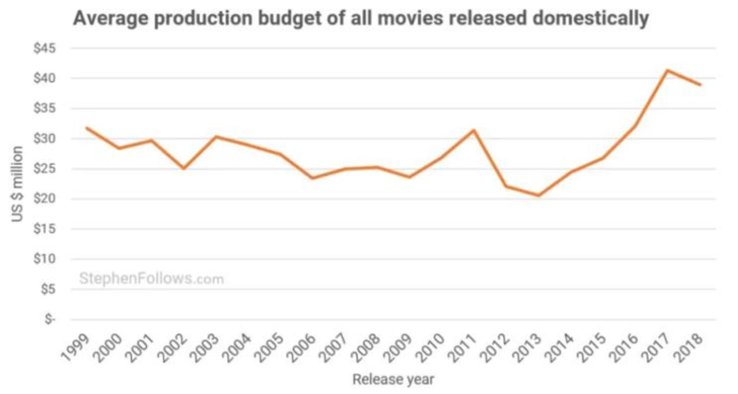 图:近20余年电影制作预算趋势,来源:StephenFollows.com