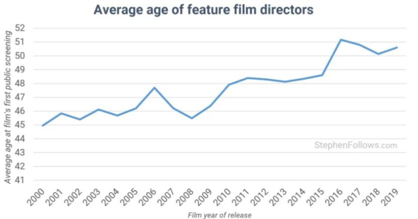 图:导演的年龄趋势,来源:StephenFollows.com