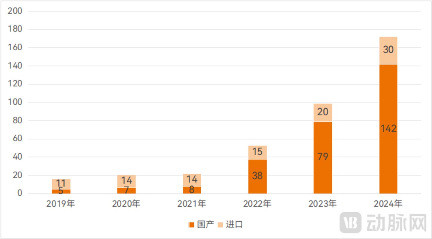 据公开数据统计,2024年国家药监局审批的医疗器械中,种植修复产品激增至172个,包括种植体及种植体系统、基台及基台系统、个性化种植桥架及配件、种植手术导航系统等;全年新获批产品数是5年前的8倍。