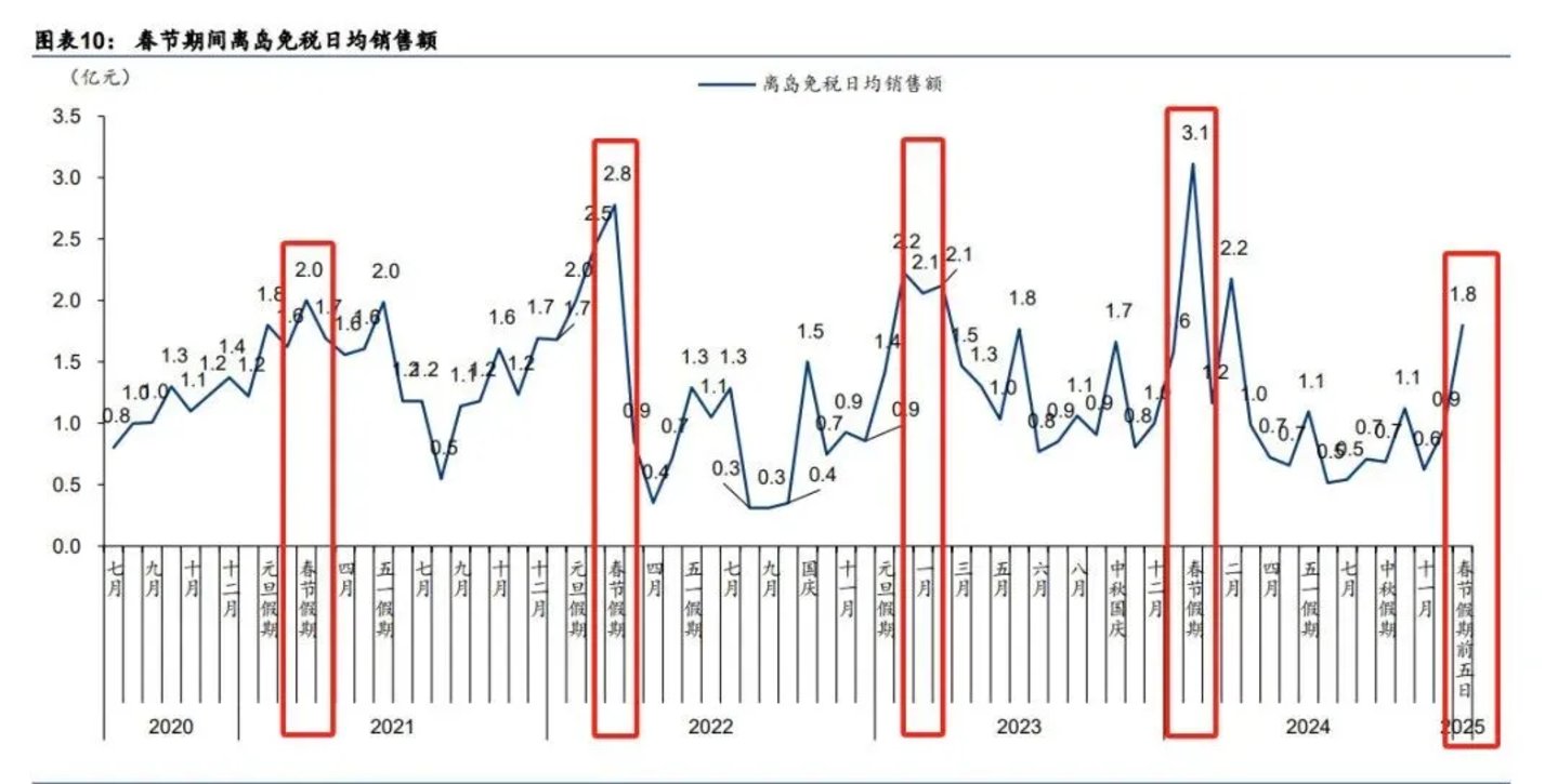 ▊ 春节期间离岛免税日均销售额 (图源:酒店资管交流岛)