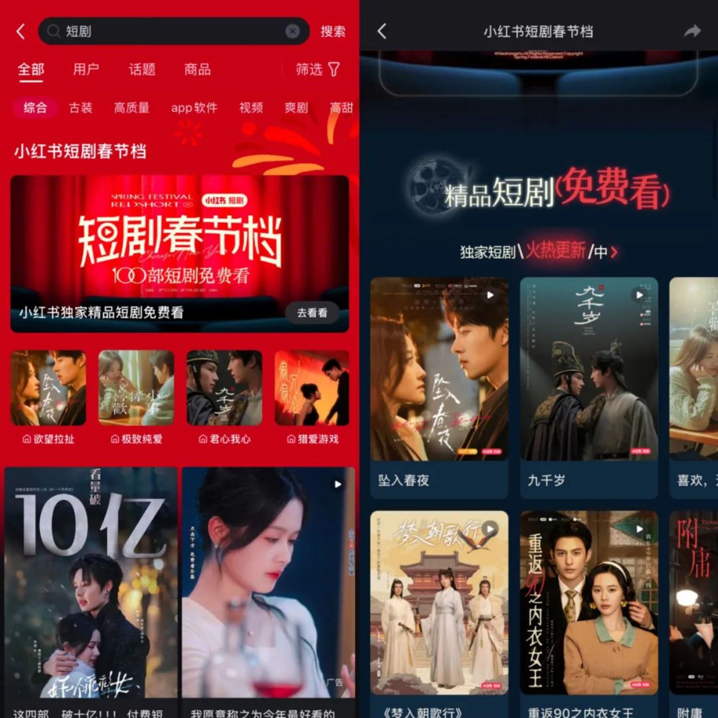 2025年1月22日,小红书官宣上线短剧频道,并开启短剧春节档。更早之前,拼多多已经在“多多视频”里增加短剧板块,百度也宣布将与点众科技合作推出多部精品微短剧。