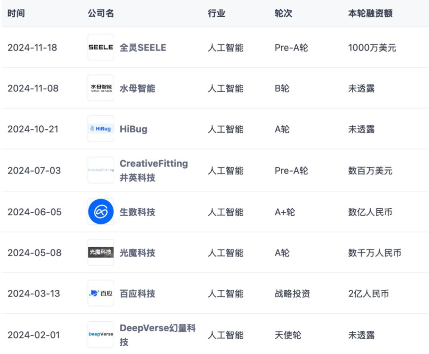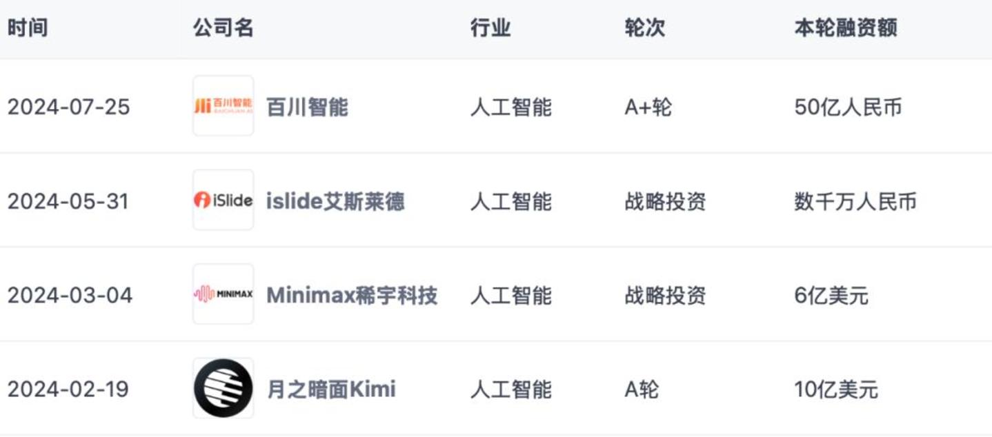 2024年AI大模型融资事件前十一(按融资金额排名)