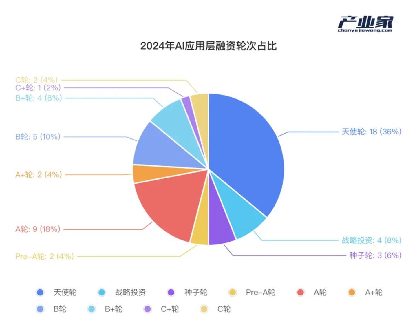 然而,不同于基础层,投资者对上层应用层则更为乐观。据统计,2024年AI应用层的融资事件当中,新成立企业占比近50%,36%融资事件集中于天使轮。资本“抢滩”早期项目迹象明显。
