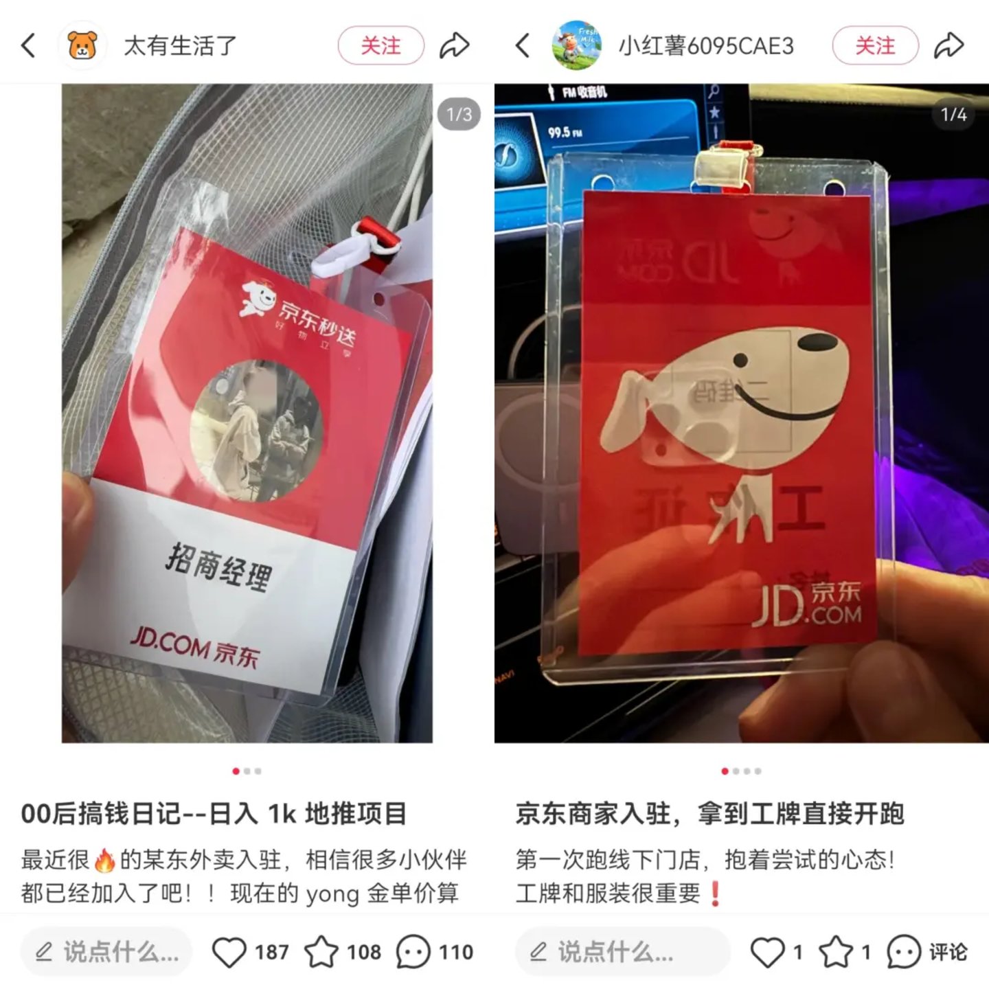 这批京东外卖的地推人员,和曾经阿里、美团的地推铁军不同,他们更多是“自由作战”,通过线上平台注册,拿着社交平台上总结出的话术,带着自己打印的京东工牌,从京东外卖最早布局的39城到全国各地的小县城,开始了一场“抢风口”的比赛。