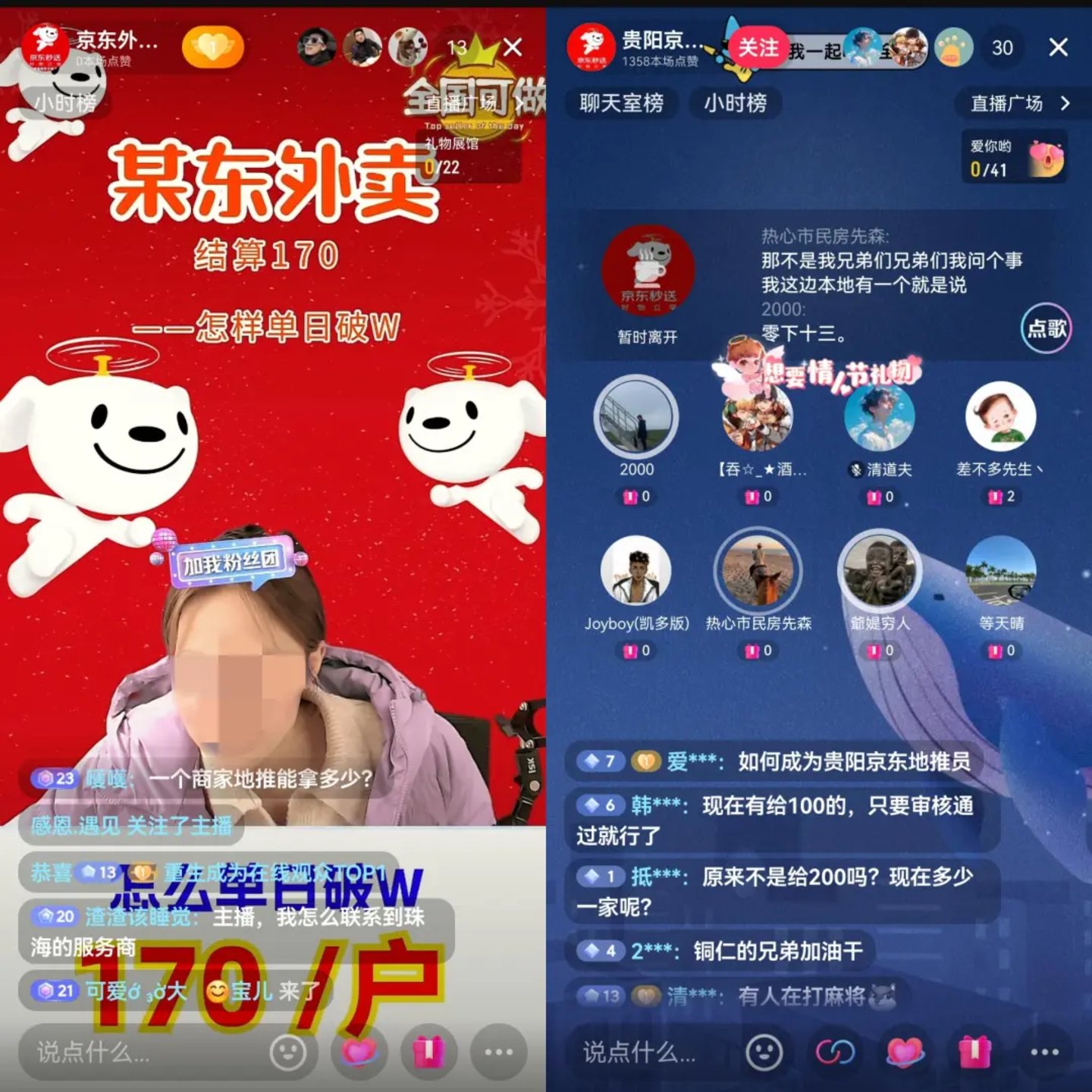 “你觉得最后能有多少商家和用户留下来?那不关我们的事,我们就是冲着赚前期这波钱去的。”抖音直播间里,几位讨论京东外卖地推的玩家直言。