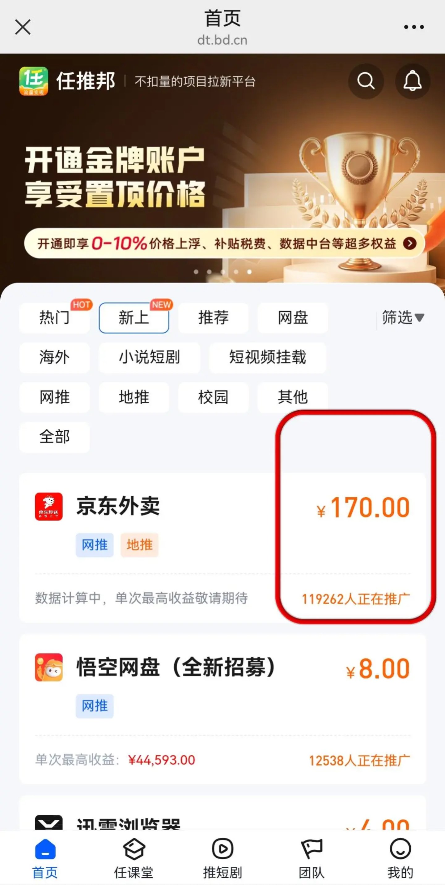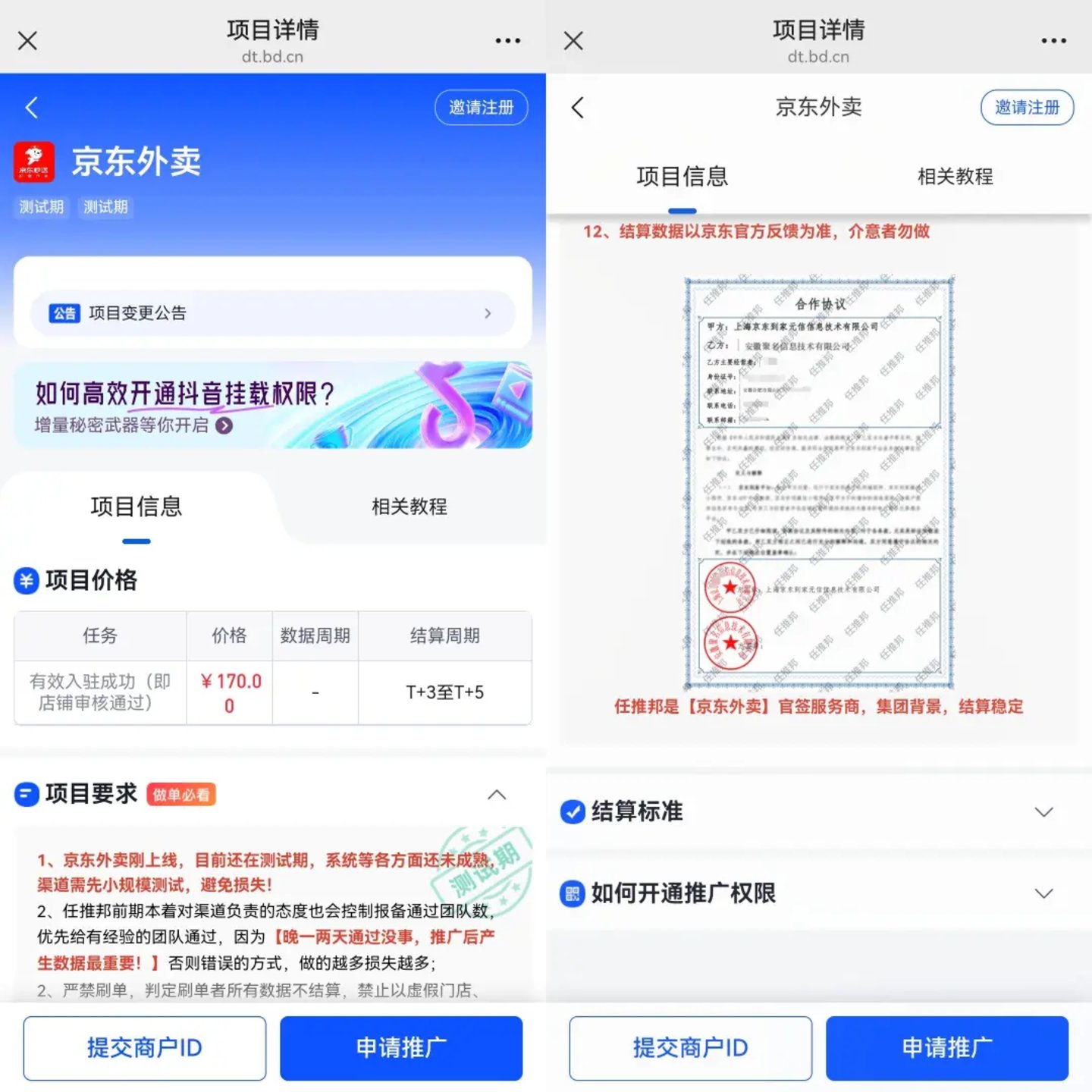 小红书、抖音和微信公众号上,无数关于京东地推的消息几乎在一夜之间火了起来,省团、街推联盟、任推邦等线上地推平台纷纷上线相关项目,各路本地服务商也开始招兵买马,单店170元的高额报酬,更是让无数想要赶上风口的玩家竞相入局——截至2月24日,仅在任推邦这个平台上,京东外卖的推广人数就超过了11万人。
