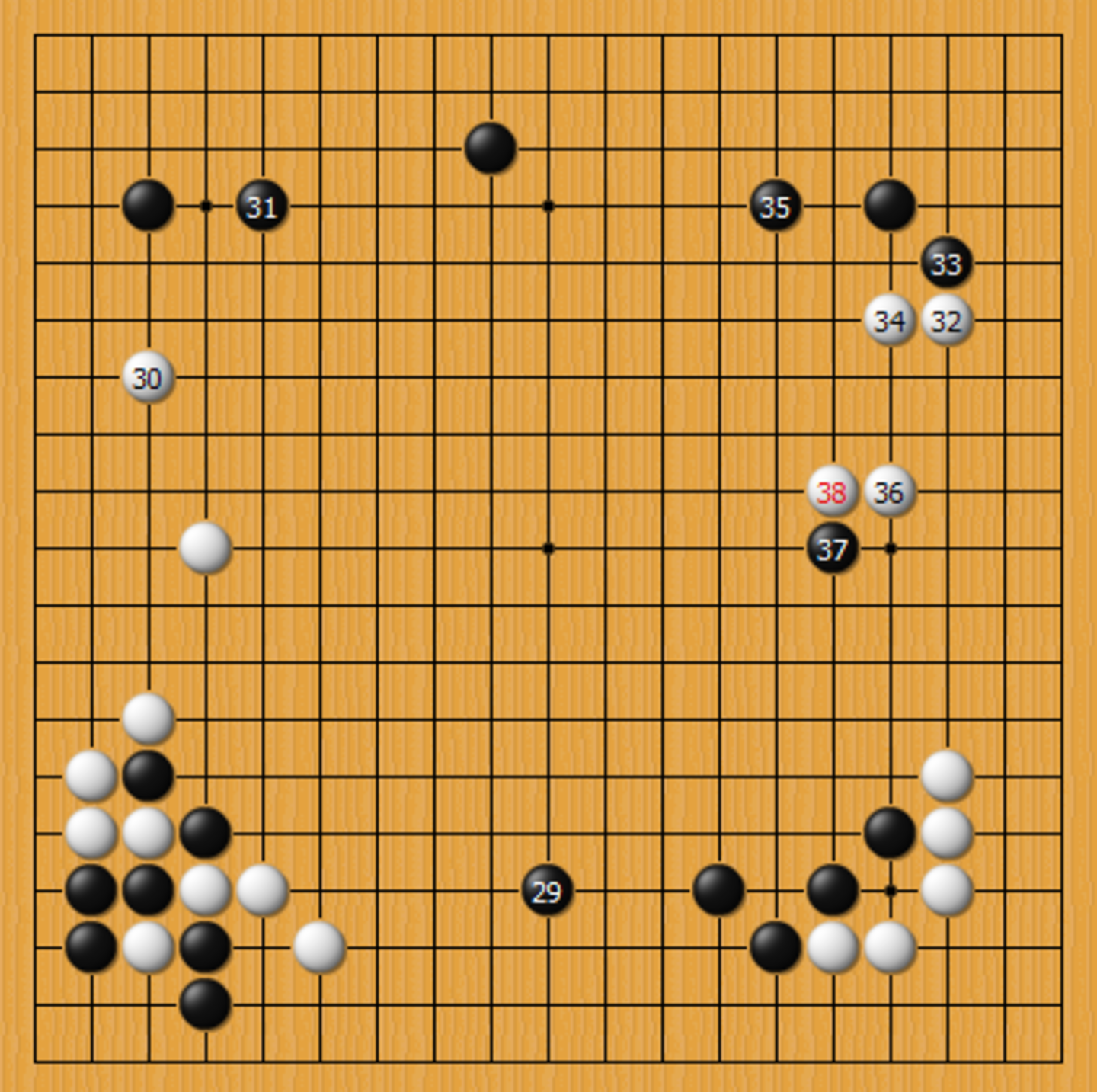 ▷ AlphaGo(执黑)与李世石(执白)对战第二局的落子情况,最终AlphaGo赢下本局。AlphaGo 的第37手落在了第五线,超出了绝大多数棋手和专家的预料。赛后,很多人对这步棋评价甚高,认为这展现了AlphaGo的全局判断力。图源:芥子观须弥