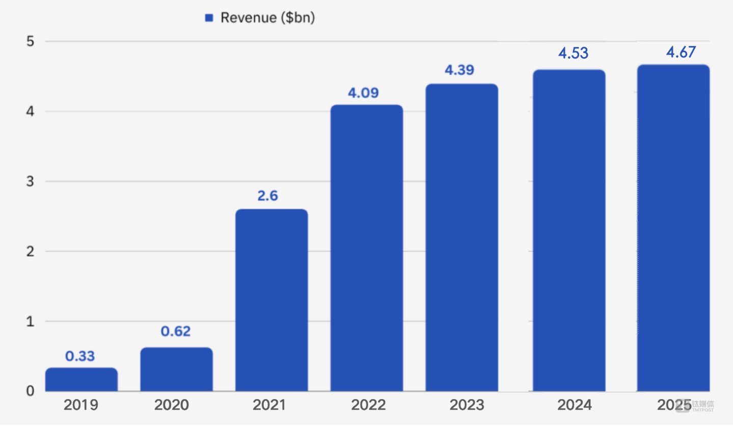 图: Zoom财年营收(单位,十亿美金),钛媒体制作