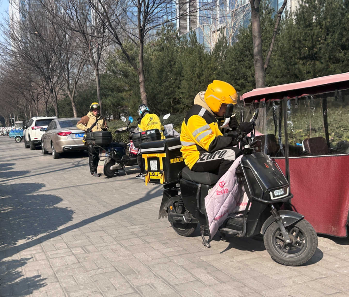 上午十点,一些外卖员在等待接单。图源:作者拍摄
