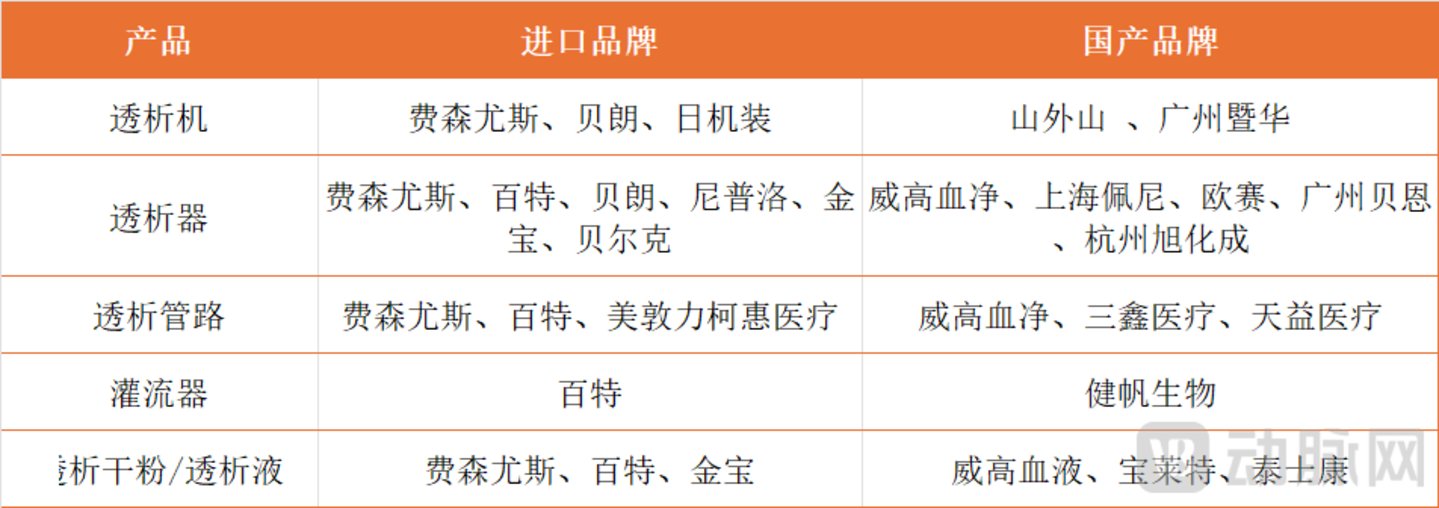 血液净化耗材、设备主要品牌 数据来源:山外山招股书