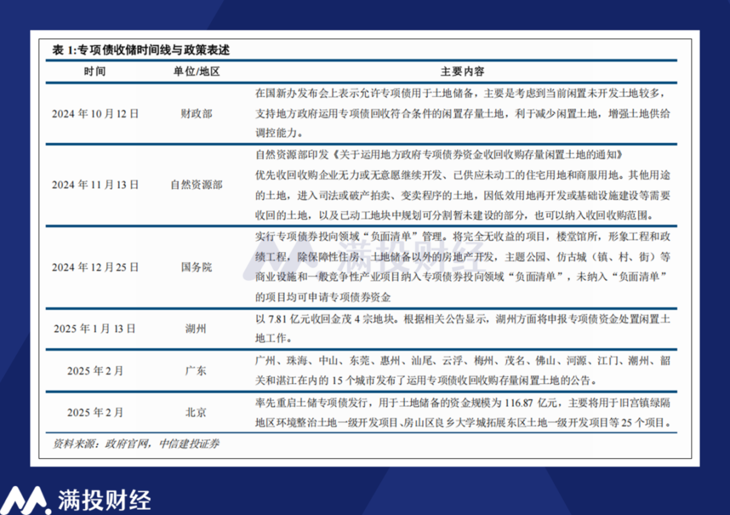 从全局来看,土地收储的加速或是支撑2025年楼市从“企稳”到“回升”的重要因素。2024年10月,财政部首次提及专项债用于土地储备、收购存量商品房事项,而2024年末的中央经济工作会议提出,“合理控制新增房地产用地供应,盘活存量用地和商办用房,推进处置存量商品房工作”为专项债用于存量土地收储提供政策依据。