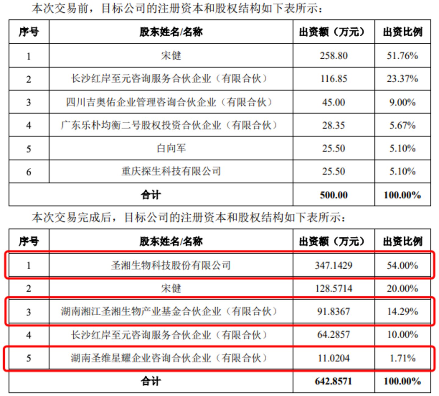 股权转让交易完成后,红岸基元将以投前估值1.4亿元进行增资,增资价格为每一元注册资本对应人民币28元,新增注册资本142.8571万元。其中,圣湘生物拟认购110.20万元注册资本对应的现金3085.71万元。本次新增注册资本认缴完成后,目标公司的注册资本为642.86万元。
