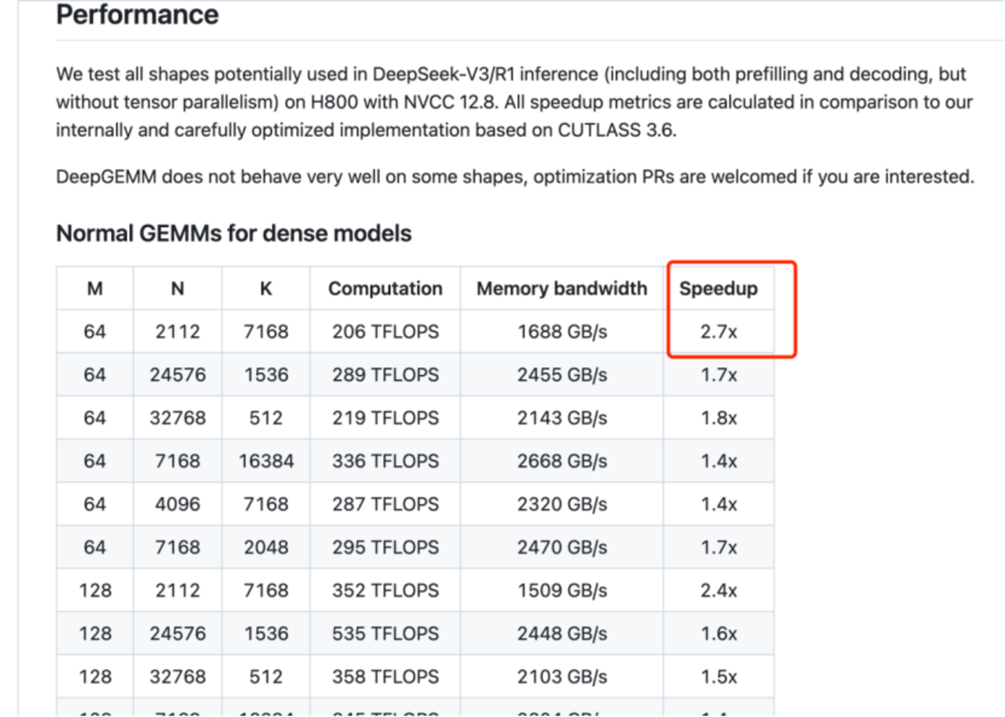 DeepSeek官方介绍DeepGEMM是一个支持密集型和MoE 模型的FP8 GEMM库: