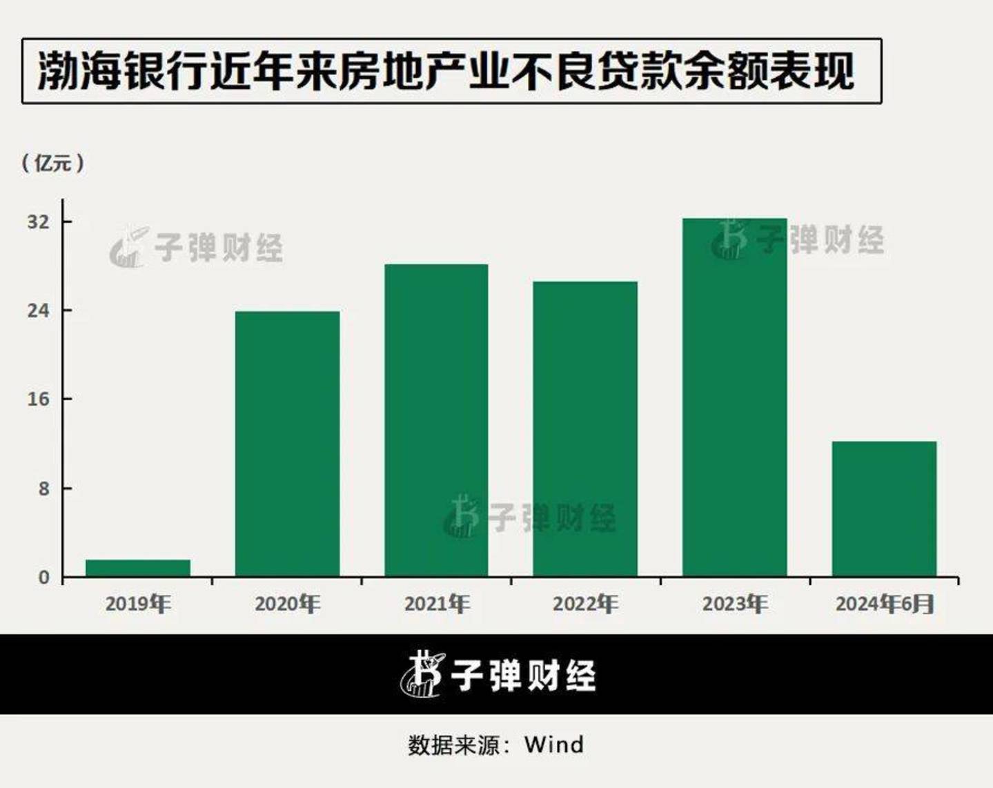 历年年报数据显示,2019年渤海银行房地产业不良贷款金额仅为1.51亿元,但自2020年这一数据飙升至23.85亿元,2021年至2023年分别为28.12亿元、26.57亿元及32.29亿元。