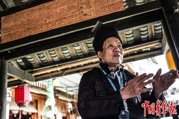 侗族木构建筑营造技艺的国家级代表性传承人杨似玉,香港回归时,广西壮族自治区人民政府向香港特别行政区赠送的“同心桥”模型就出自他手。中青报·中青网见习记者 陈宇龙/摄