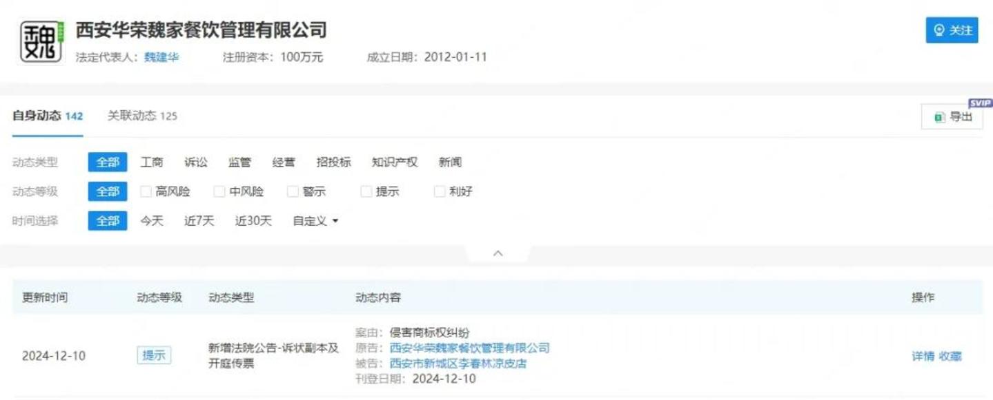 这自然引发了华荣魏家的不满。红餐网查阅企查查发现,华荣魏家以“商标侵权”为由,起诉了李春林名下的部分企业。
