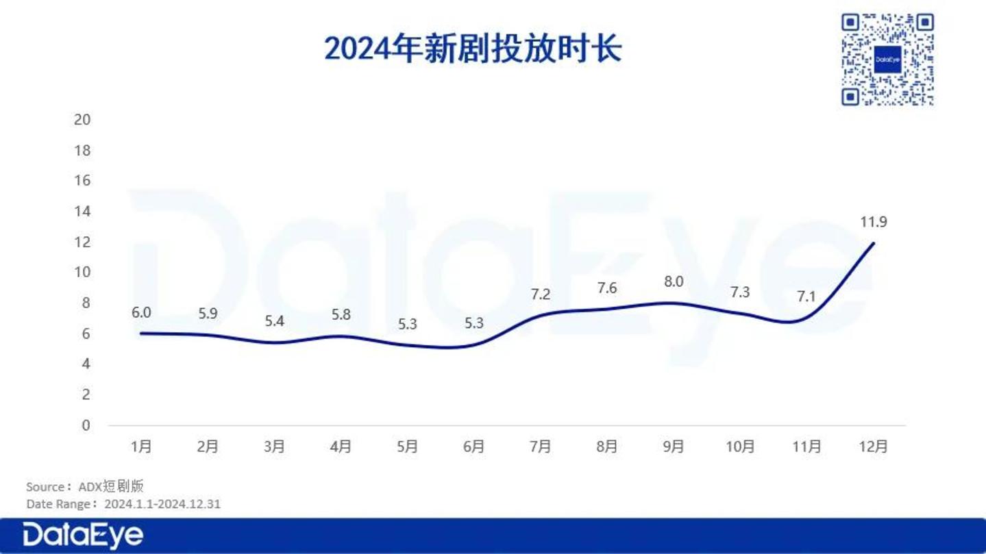 大量新剧的涌入导致市场迭代趋势加快,新剧的平均投放时长仅为7天,生命周期较短,大部分新剧仅投放一周左右便消失匿迹。