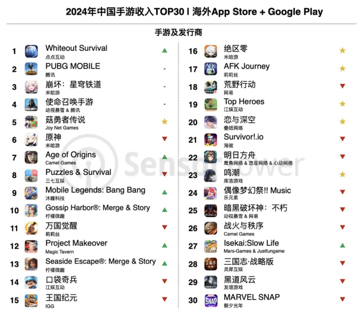 米哈游《原神》的成功,教科书般地诠释了“本地化”的价值。剧情文案的精雕细琢,角色配音的本土化适配,节日活动的文化习俗考量,《原神》在全球市场攻城略地,靠的是对细节的极致打磨,对文化的深度尊重。Sensor Tower 数据显示,《原神》海外收入持续领跑,是当之无愧的出海标杆。