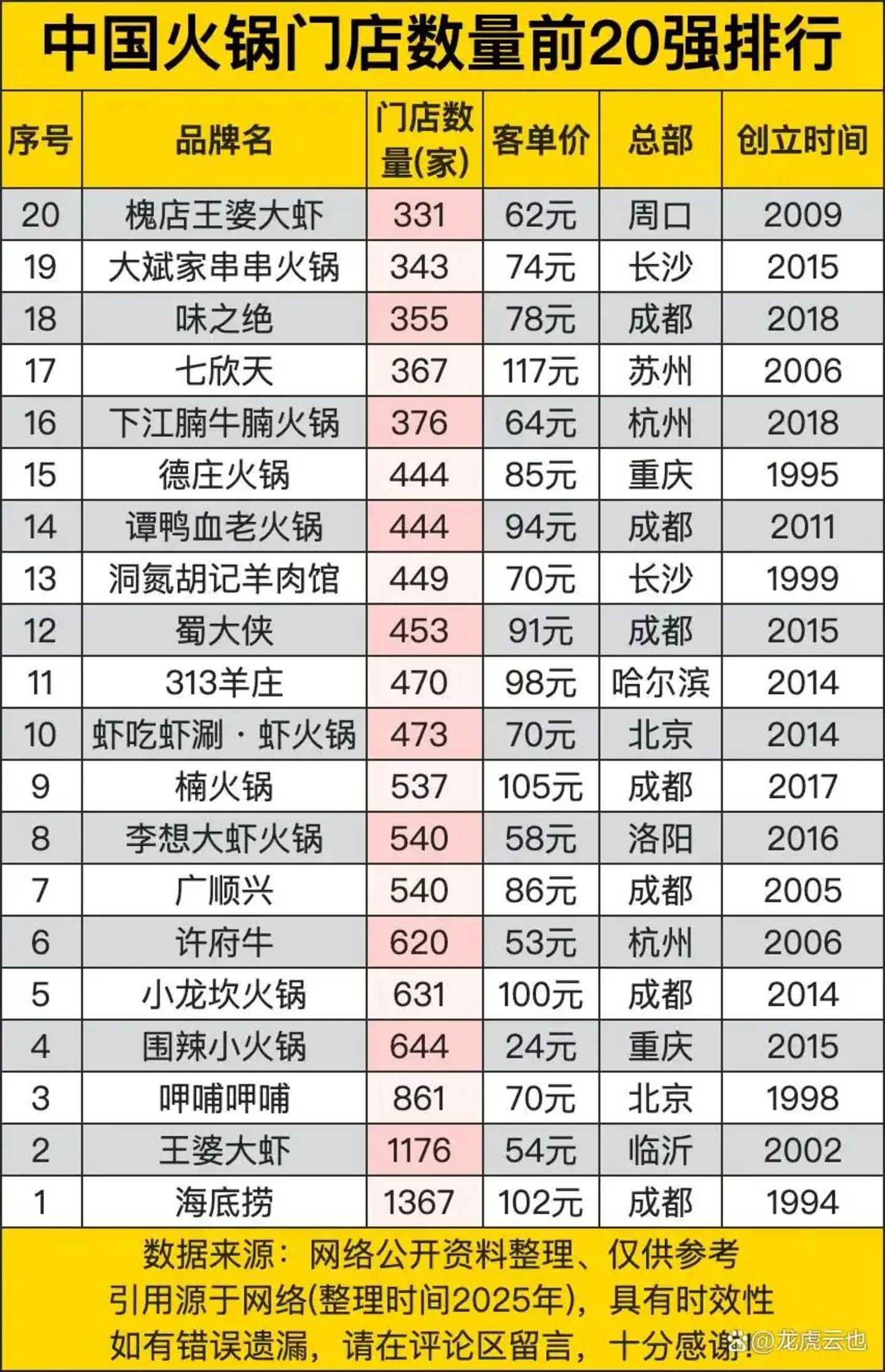 论门店数量,自诩中高端品牌的巴奴,门店数量还未排进全国火锅品牌行业前二十名。