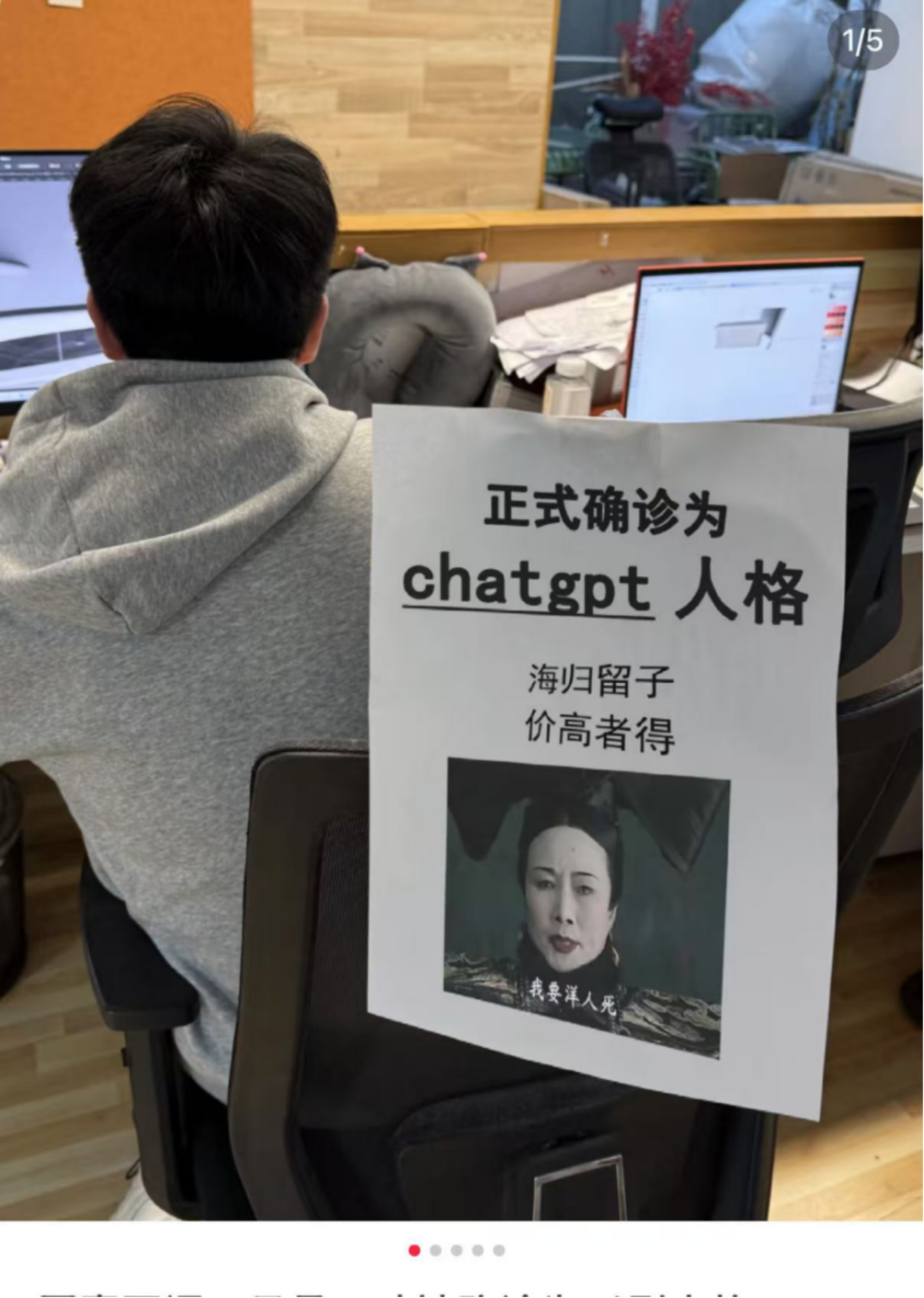 它告诉我:“这个现象可能是在讨论现代职场中对AI技术的过度依赖,或者员工被迫适应AI化的工作方式,失去人性化的一面。”