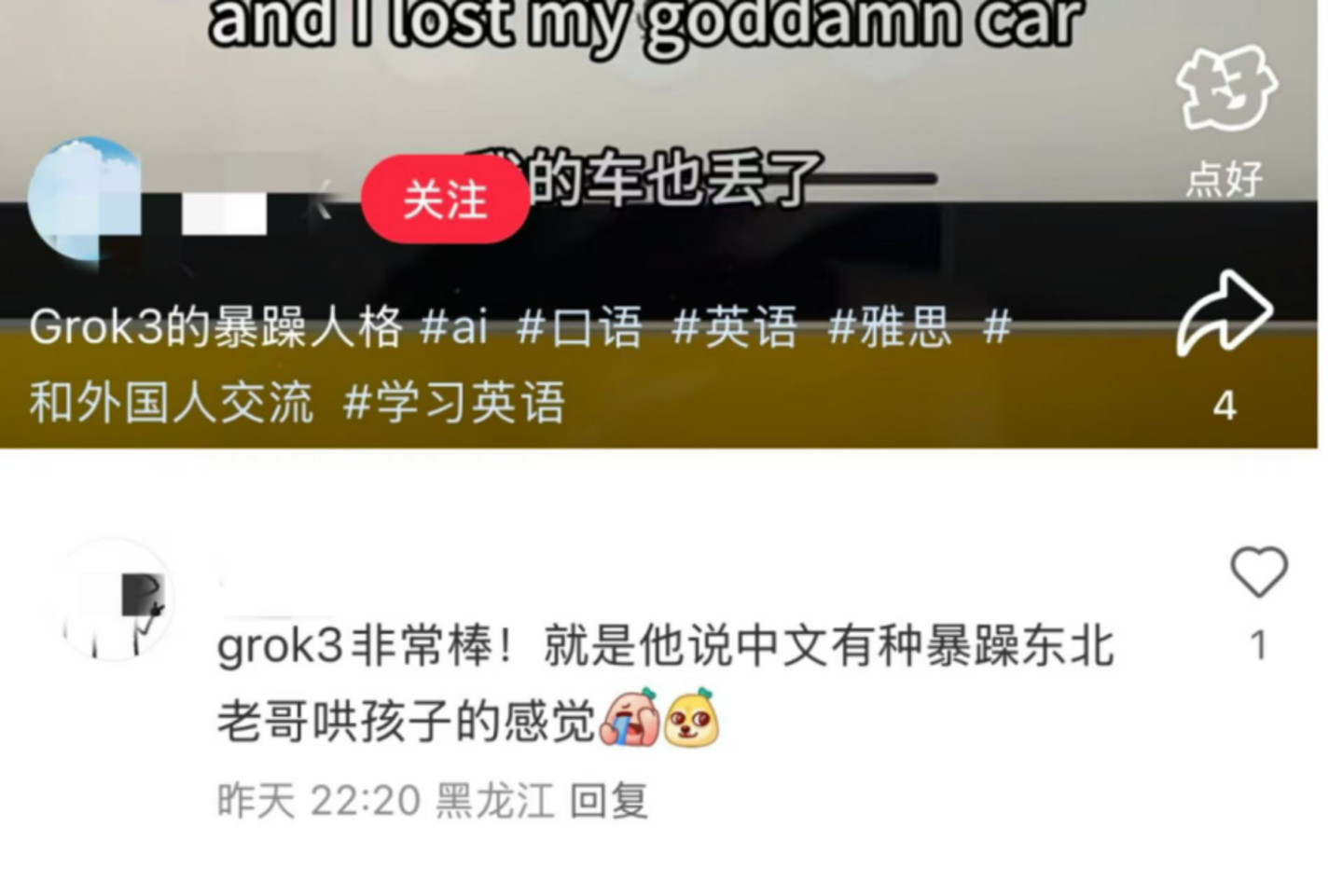 于是这位AI届的“海归刺头”,完美复刻了一部分留学生社交名场面:直球式沟通,有时候甚至有点打脑壳,以至于“Grok 3型人格”被部分网友赋予了“暴躁”属性。