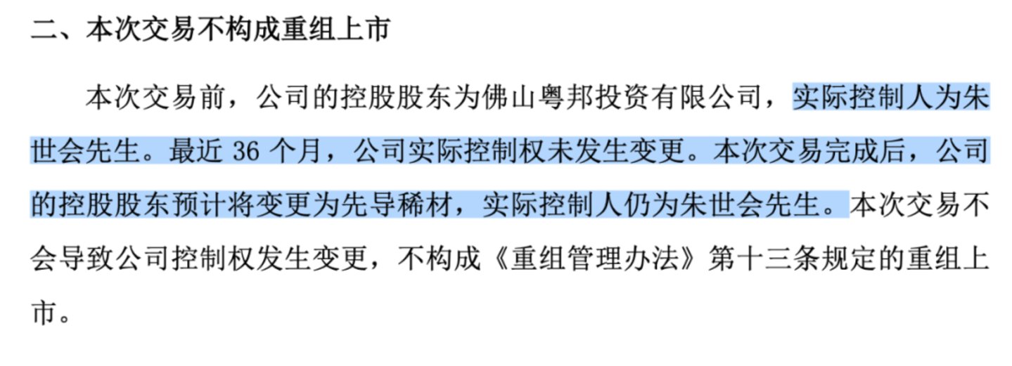 对于这次涉及关联交易的“蛇吞象”式重组,光智科技反复在公告中强调的一点是:“构成重大资产重组但不构成重组上市。”至于原因,简而言之即:光智科技的实际控制人在并购交易完成前后不变,均为“朱世会先生”。